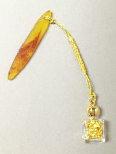 | 仕様 : | ガラス製ボトル 25x15x10mm 純金箔片 約2mg ストラップ 長さ約65mm 彫刻後クリアコーティングをします。 |