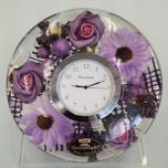 | 青く小さな忘れな草の花と白いバラの組み合わせが清々しい時計です。 | バイオレットの花々の落ち着いた色彩が美しいアレンジの時計です。 | ||||||||||||||||||